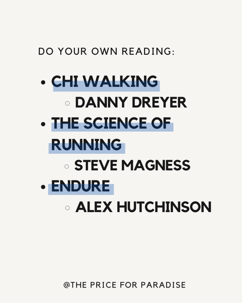 Don’t forget to check out audiobooks like ‘Chi Walking’ by Danny Dreyer for technique, ‘The Science of Running’ by Steve Magness for a deeper understanding, and ‘Endure’ by Alex Hutchinson for motivation.